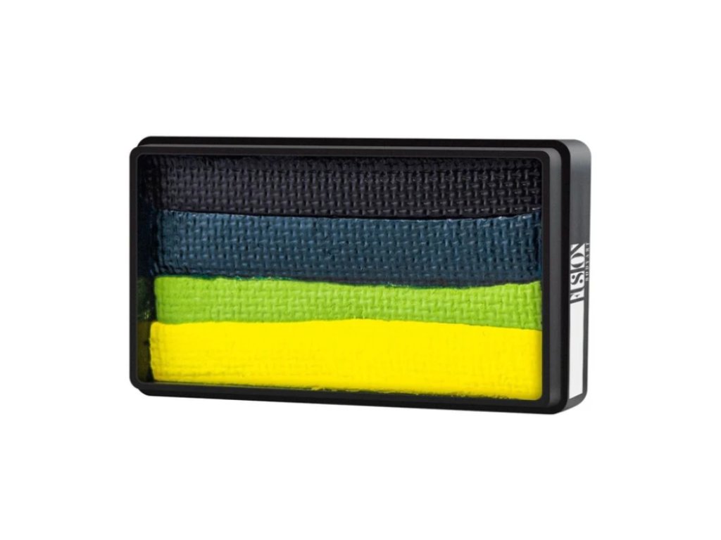 Fusion Body Art ponúka rozdelenú tortu pre každý vkus face maliara! Pokiaľ máte radi pekný tmavý okraj na zelených gradientných tortách, aby ste sa vyhli nutnosti obrysovať svoje návrhy, potom je pre vás Jungle Snake ideálnou voľbou! Jungle Snake nie je skvelý len pre hady. Túto tortu môžete použiť na jednorazové kreslenie jašteričiek, dinosaurov, listov, stromov, príšer a hrdinov. Ak nechcete pri niektorých návrhoch zaberať čierny okraj, môžete tortu naplniť štetcom so šírkou ¾”.