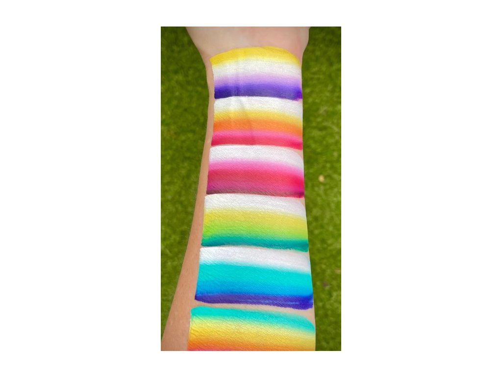 Fusion Body Art Face Paint sa rýchlo a ľahko nanáša vlhkým štetcom alebo hubkou. Fusion Face Paints je možné ľahko odstrániť mydlom a vodou nanesenou na mäkkú handričku alebo špongiu. Farby Fusion Body Art Face obsahujú iba vysoko kvalitné pigmenty a prísady šetrné k pokožke vyhovujúce FDA a EU. Každá farba bola starostlivo vyvinutá, aby vám poskytla tie najjasnejšie a najkryvnejšie farby pre váš make-up. Fusion Body Art Face Paints rýchlo schnú a po zaschnutí majú povrch odolný proti rozmazaniu. Akonáhle základná farba zaschne, môžete na seba vrstviť farby a farby na tvár Fusion Body Art Face Paints môžete miešať, pokiaľ sú ešte vlhké, aby ste vytvorili nekonečné krásne odtiene.