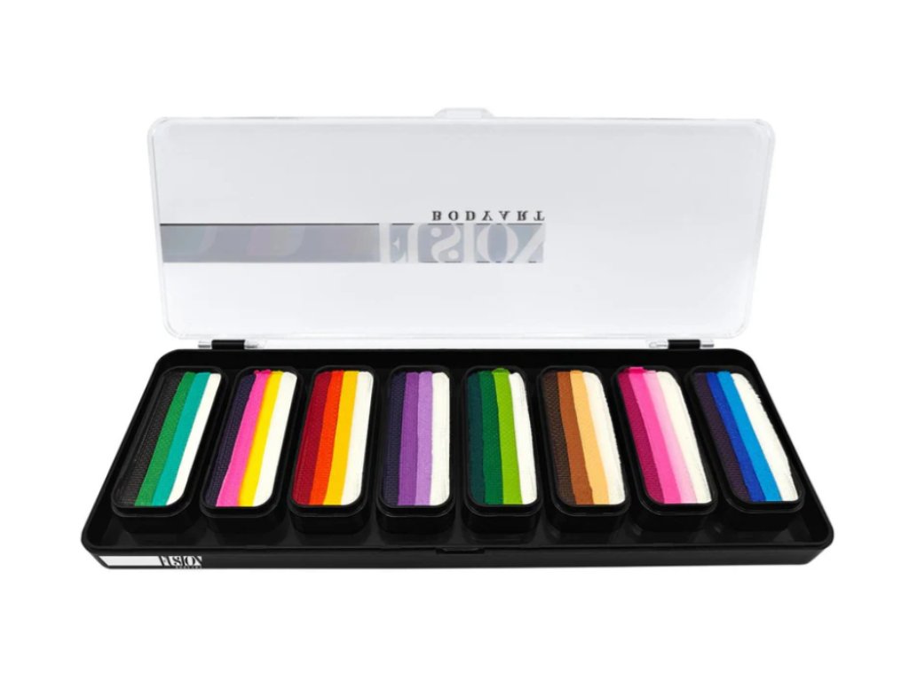 Farby na tvár Fusion Body Art sa rýchlo a ľahko nanášajú mokrým štetcom alebo hubkou. Farby na tvár Fusion Body Art je možné ľahko odstrániť mydlom a vodou nanesenými na mäkkú handričku alebo hubku. Farby na tvár Fusion Body Art obsahujú iba vysoko kvalitné pigmenty a zložky, ktoré sú bezpečné pre pokožku a spĺňajú normy FDA a EU. Každá farba bola starostlivo vyvinutá, aby vám poskytla tie najjasnejšie a najkryvnejšie farby pre vaše líčenie. Farby na tvár Fusion Body Art rýchlo schnú a po zaschnutí majú odolný povrch proti rozmazaniu. Akonáhle základná farba zaschne, môžete farby vrstviť na seba a farby na tvár Fusion Body Art môžete miešať, pokiaľ sú ešte mokré, a vytvárať tak nekonečné množstvo krásnych odtieňov.