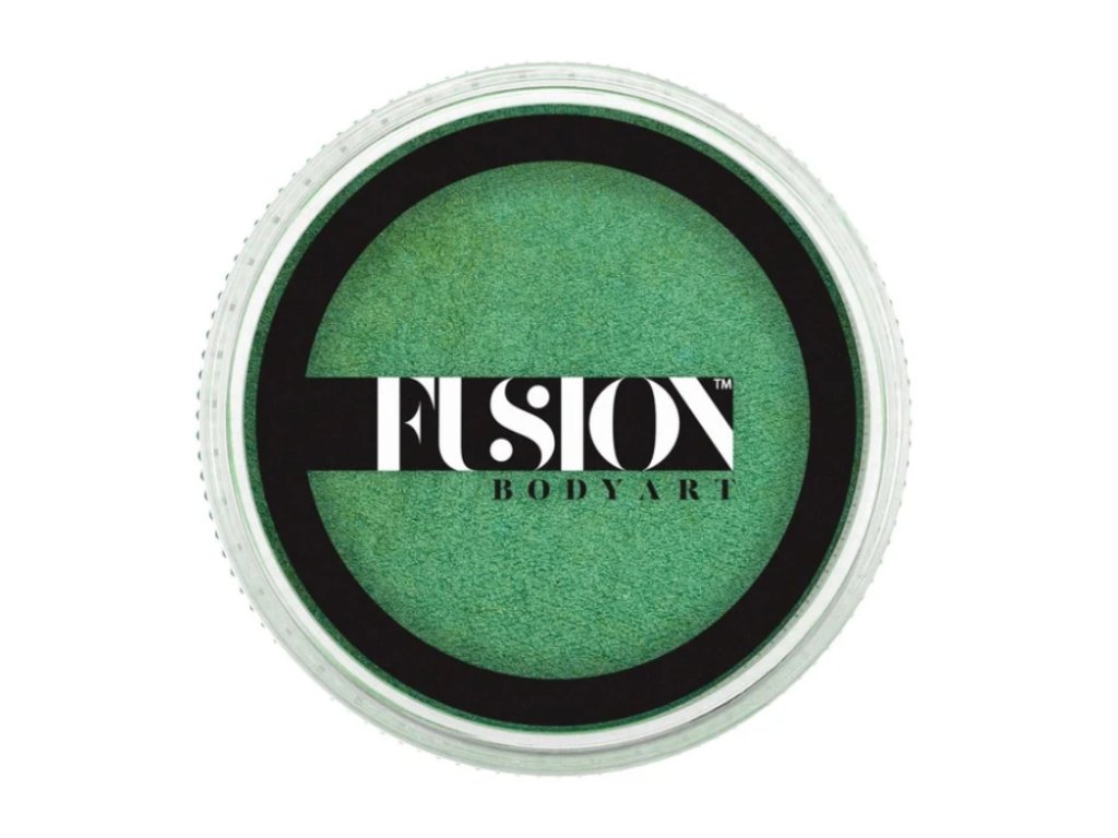 Fusion Body Art vytvoril túto krásnu farbu pre kúzelné tváre morských panien a nádherné víly. Perlovo mätovo zelená je tiež ideálna pre trblietavé draky, perleťové mačiatka.Perlovo mätovo zelená je jemná pastelovo zelená, ktorá sa pri pohybe pod svetlom zlatisto leskne.